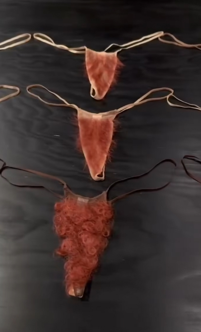 Стоит отметить, что рассматриваемая коллекция напоминает вещи под названием «меркин». Это специальные парики, изготовленные для интимной зоны, которые уходят корнями далеко в XV век.